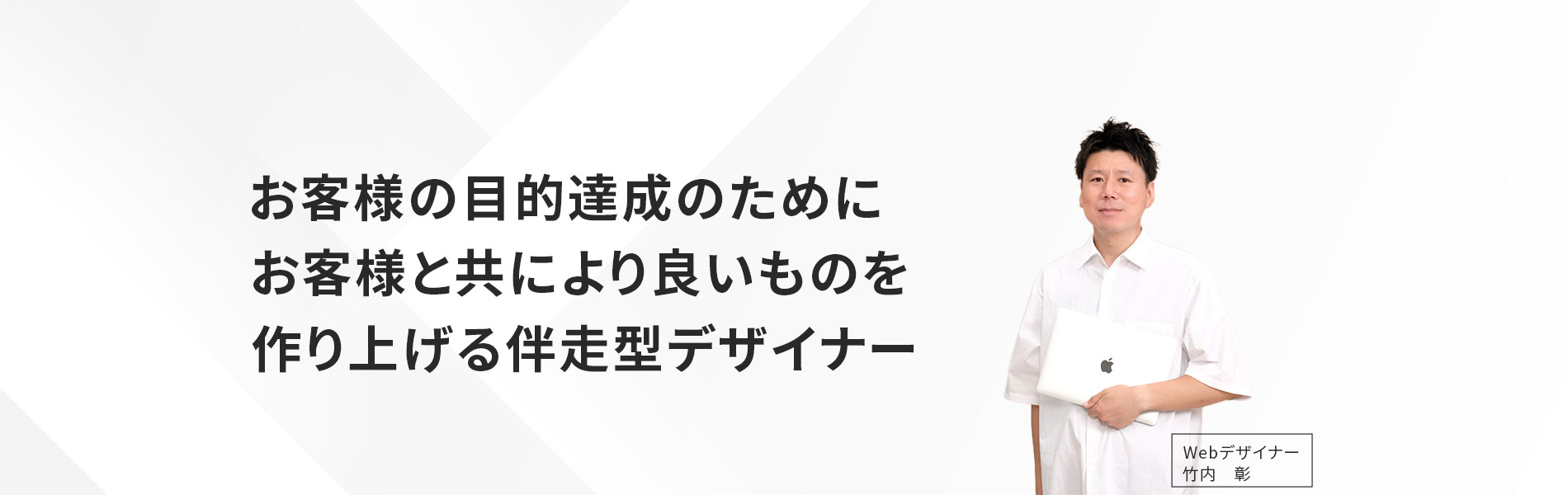 takeuchi_designは「初めは誰もが初心者」をモットーに、初めてでわからないお客様にも寄り添い、安心してご依頼いただきお客様と一緒に目的達成を目指すデザイナーです。